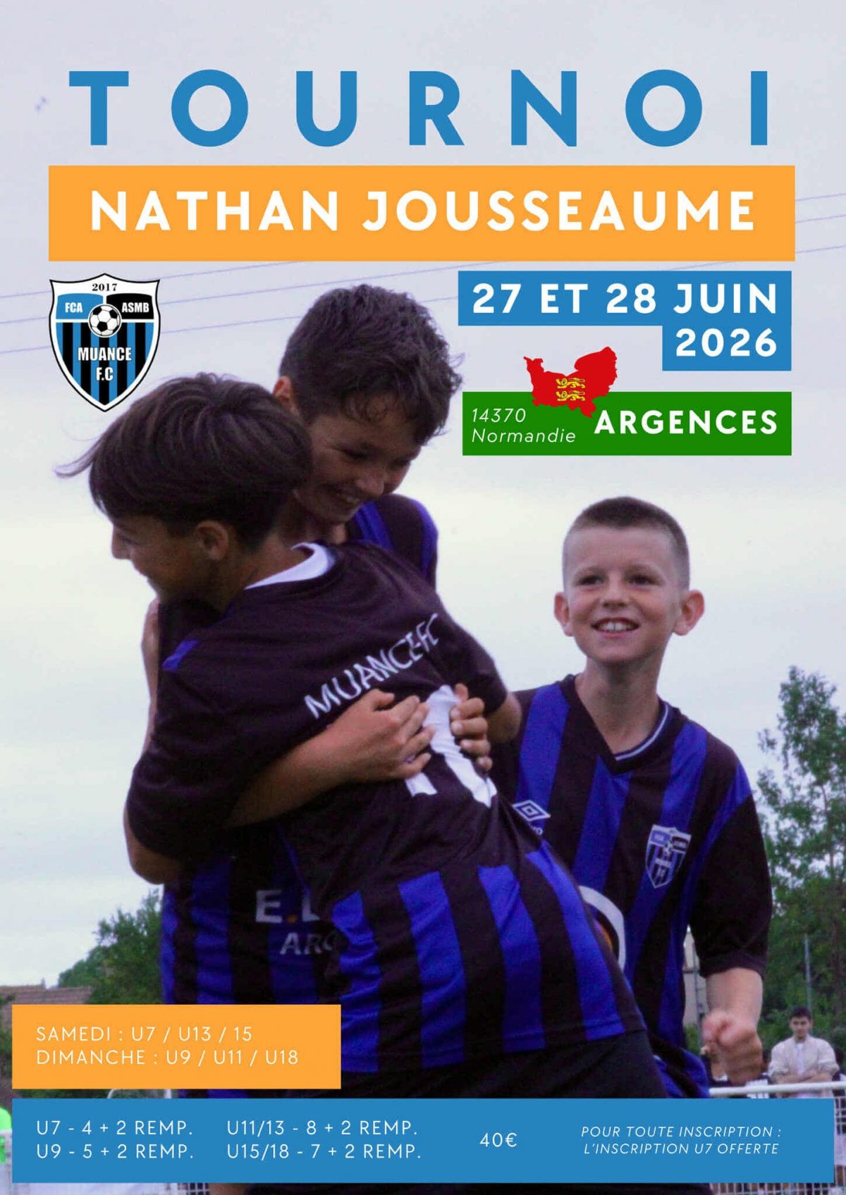 Le Tournoi Nathan Jousseaume 2026 organisé par le Muance FC aura lieu les 27 et 28 juin 2026 au complexe sportif d’Argences (Calvados, Normandie). Cet événement est devenu un rendez-vous incontournable du football amateur, attirant chaque année des clubs de toute la France et de l’étranger.