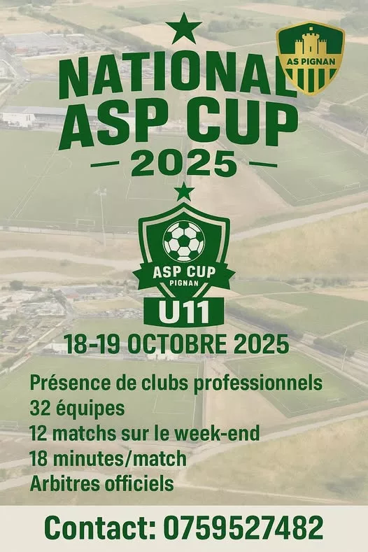 L’AS Pignan organise la National ASP Cup 2025 – U11 les 18 et 19 octobre 2025 à Pignan (Hérault, Occitanie).